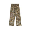 Its design seems to be inspired by the clever fusion of military camouflage and street culture, creating a visual effect that is both tough and casual through the green and brown camouflage pattern. The white graffiti text and patterns on the pants add a bit of fun and artistry to the overall look. These pants are also full of highlights. The thin cord design at the waist not only makes it easy to adjust the elasticity, but also provides the wearer with more matching options. The graffiti text and patterns on the pants not only add to their practicality (different text and patterns can be used to express personal attitudes and emotions), but also add a bit of personality and fashion to the overall look. Meanwhile, the details of the pants, such as zippers and pockets, have also been finely processed and adjusted to ensure comfort and convenience when wearing them.