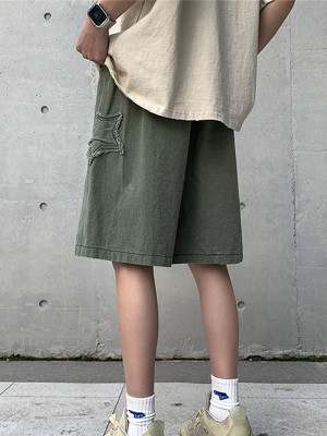 Garment supplier | Star patch embroidery shorts | Loose straight shorts | Men's summer denim shorts