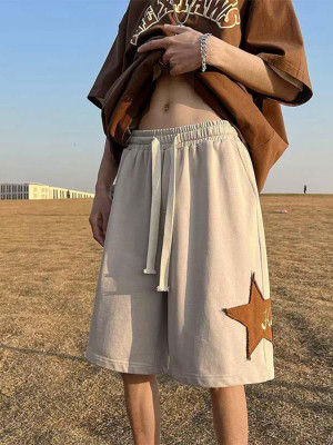 Custom streetwear | Stars embroidery shorts | Beach plus size shorts | Mens 100%cotton summer shorts
