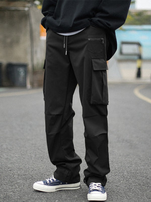 Pants manufacturer | Men's solid color pants | Wide leg straight pants | Multi pockets cargo pants