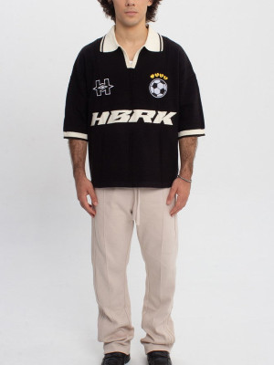 Black and white knit sport polo | Street embroider graphic | Soccer cup style tee | Garment supplier