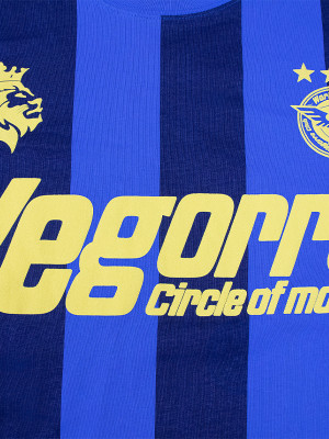 Men 100%cotton soccer jersey | Blue striped sports t-shirt | Badge printed | Custom World Cup jersey