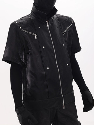 Men short-sleeve vest jacket | Zipper stand-up collar jacket | Nylon lightweight jacket | OEM jacket